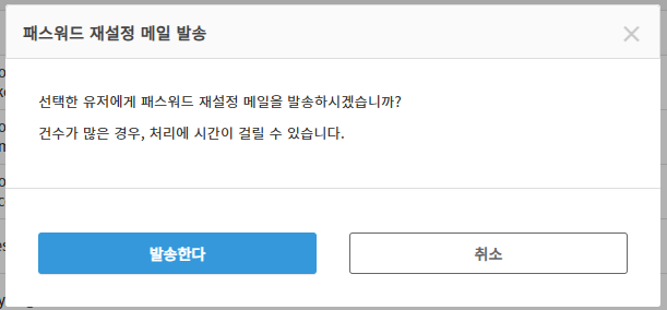 패스워드 재설정 메일을 복수의 유저에게 발송할 경우, 유저 목록 에서 일괄로 발송하는 것이 가능합니다.