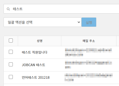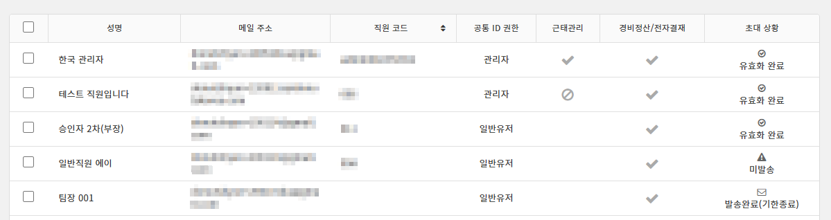 목록에서는 회사 계정에 소속한 모든 유저가 표시됩니다.