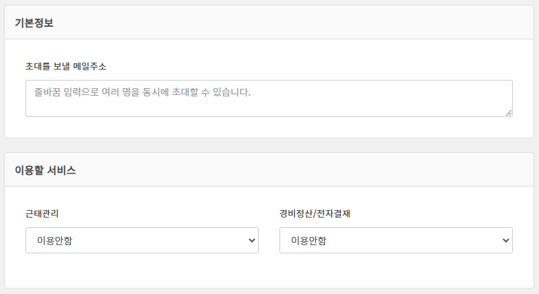 초대 메일은 여러 명에게 한꺼번에 발송하는 것이 가능합니다.