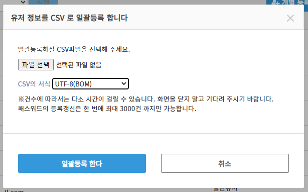 관련 안내:유저를 CSV파일로 일괄 등록・갱신