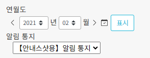 년・월・알림 설정을 선택하여 【표시】 버튼을 클릭하면 해당하는 데이터가 표시됩니다.