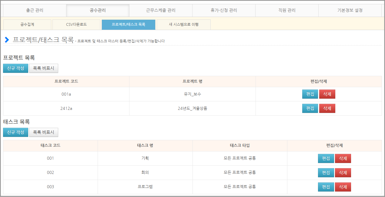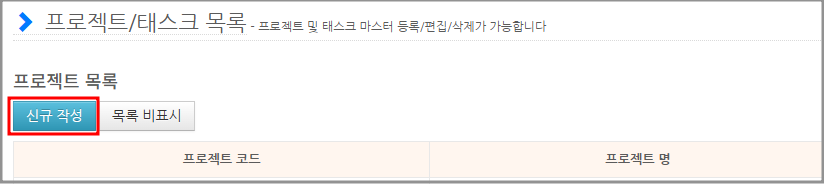 공수 관리를 이용하기 위해서는 우선 프로젝트와 태스크를 작성해야 합니다.