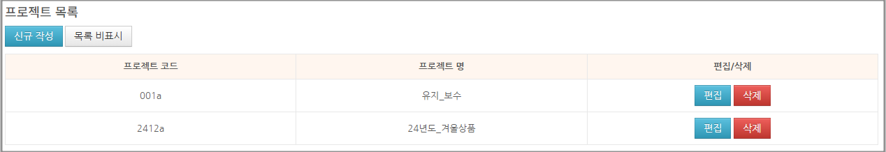 | 프로젝트 코드 | 프로젝트를 관리하는 프로젝트 코드를 입력해 주십시오. 프로젝트 코드는 추후 수정할 수 없습니다. ※ 최대 16문자 까지 입력 가능 |