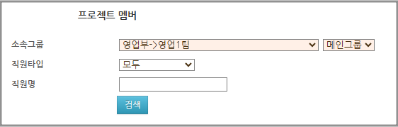 검색 결과에 표시된 직원 중에서 프로젝트 멤버로 추가할 직원의 항목에 체크를 넣어 주십시오.