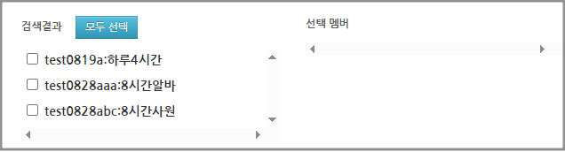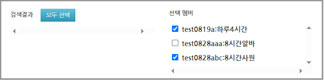 체크를 넣은 직원은 「선택 멤버」란으로 이동됩니다.