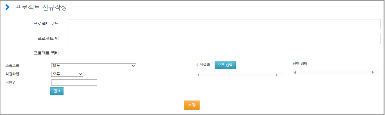 프로젝트 멤버를 등록 해 주십시오. 프로젝트에 등록하지 않은 직원은 마이페이지에서 공수를 입력할 수 없습니다. |