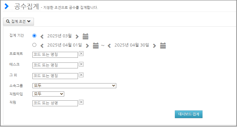 | 직원 타입 | 직원 타입으로 집계할 직원을 검색합니다. |
