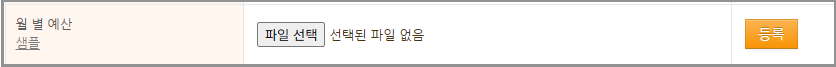 | 월별 예산 | 월별 예산은 예산 란에「0(숫자 0)」을 입력하여 업로드하면 삭제하는 것이 가능합니다. |