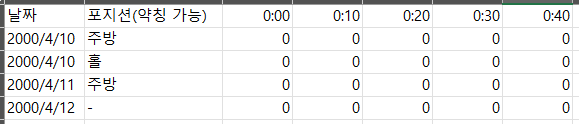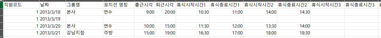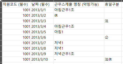 일괄 등록을 진행하기 전의 근무스케줄 패턴