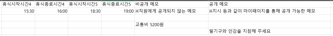 | 공개 메모 | 공개 메모를 입력합니다. 내용은 마이 페이지를 통해 직원에게 공개됩니다. |