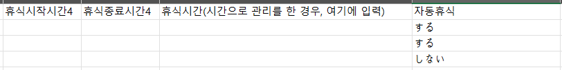 | 휴식 종료시간1~5 | 휴식 종료 시각을 입력합니다. |