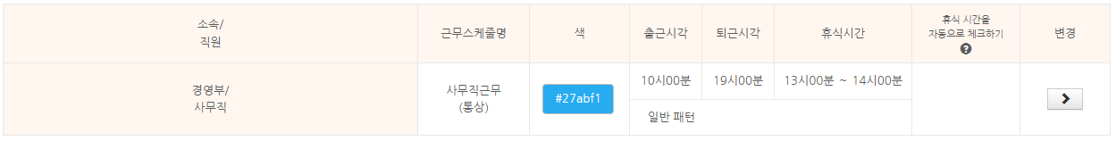 | 소속 그룹 | 해당 근무스케줄 패턴을 사용할 그룹을 입력합니다. |