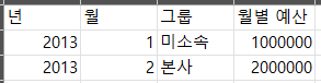 | 월별 예산 | 월 별의 예산 금액을 입력합니다. |