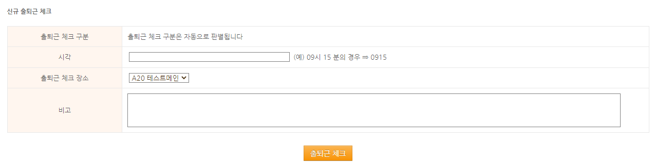 출퇴근체크 상태를 확인하고, 필요에 따라서 신규 출퇴근 체크를 추가하거나