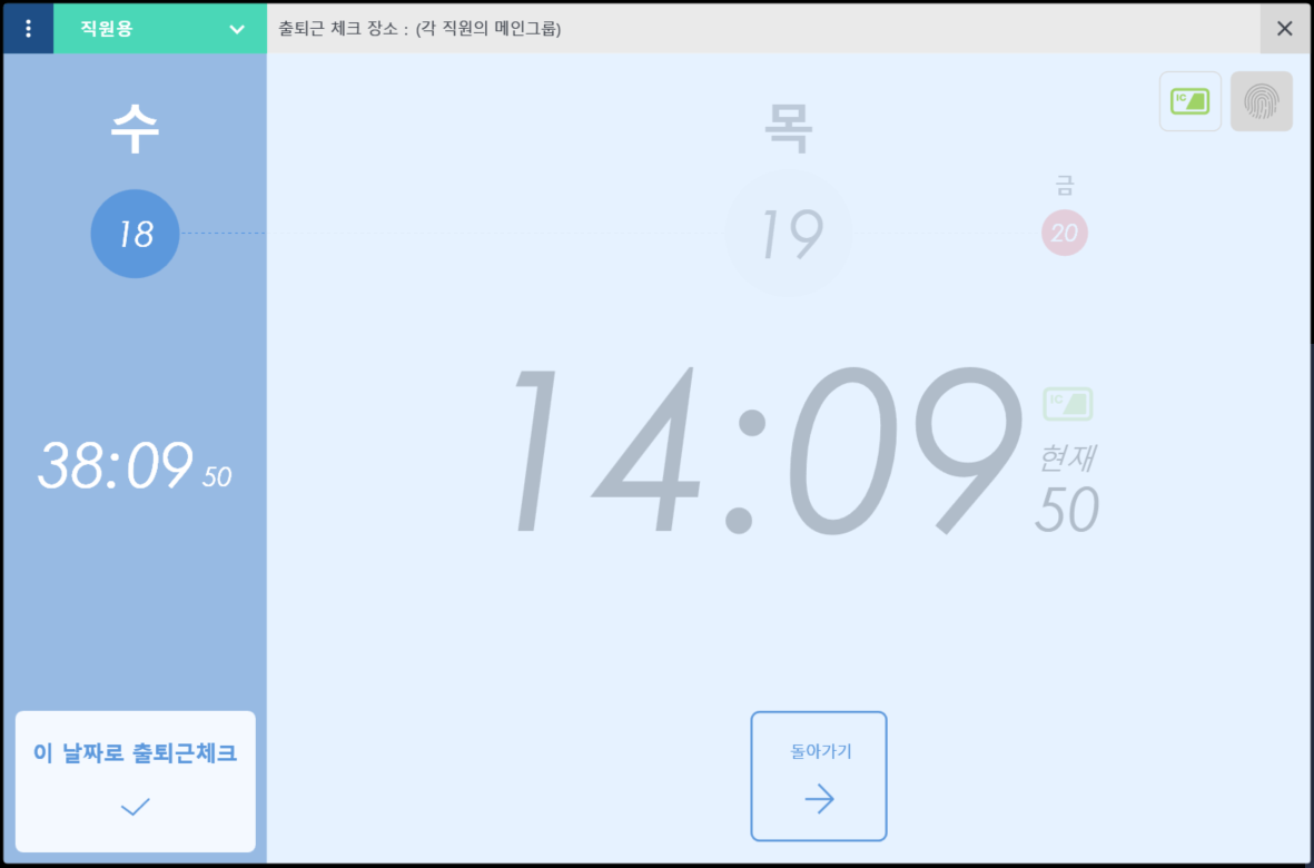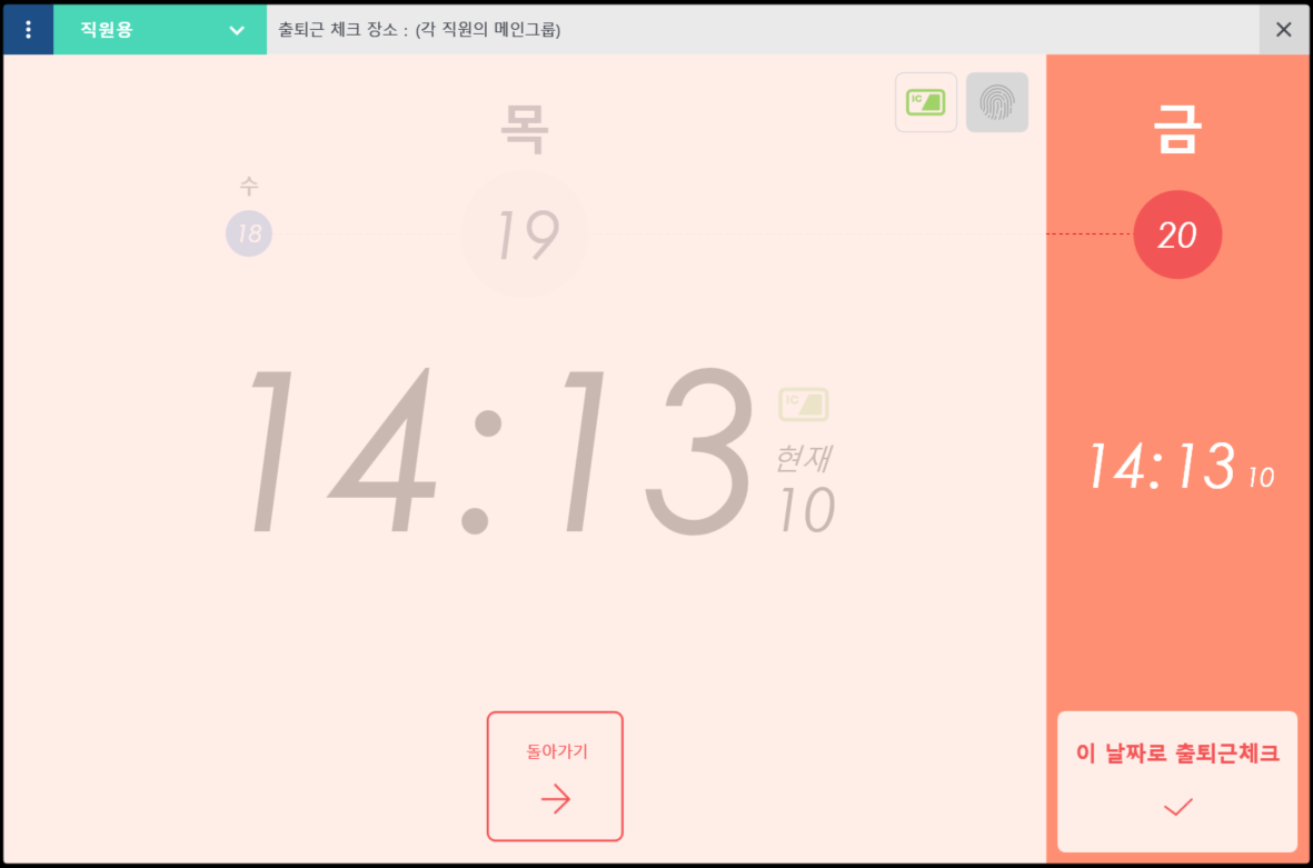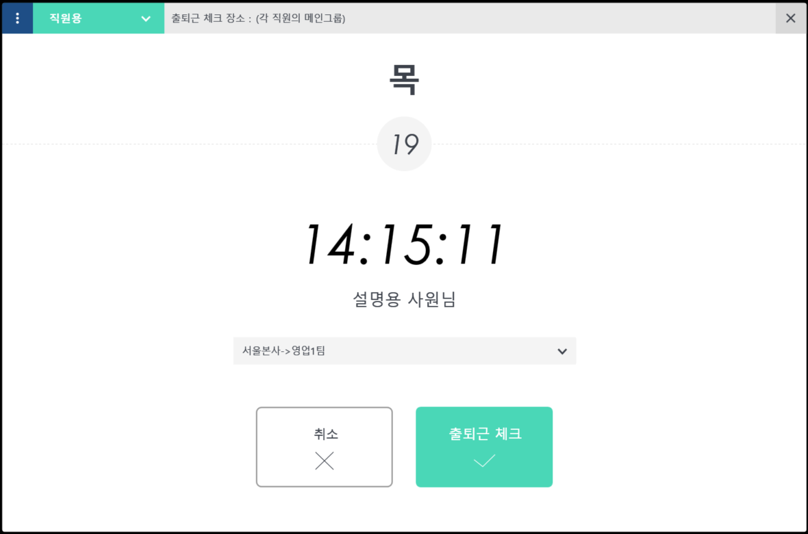 ② 설정한 출퇴근체크 방식으로 출퇴근체크