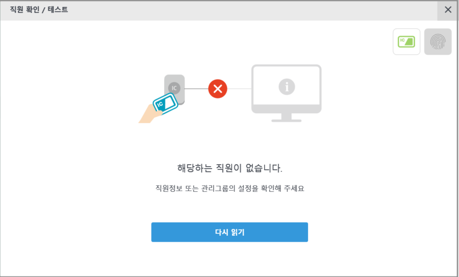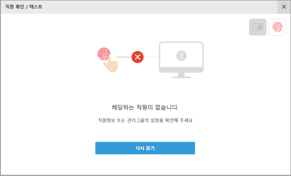 「해당하는 직원이 없습니다.」 * 인증 방법이 「1:1」인 경우
