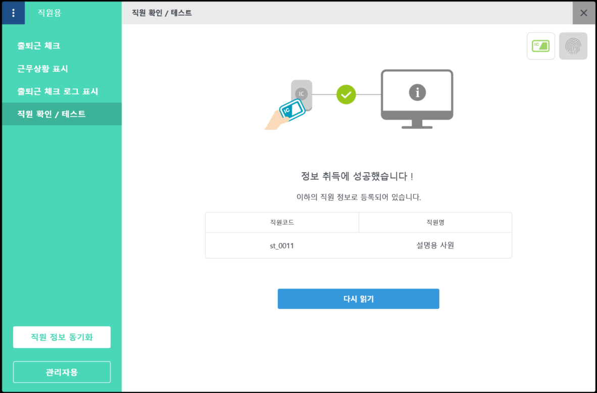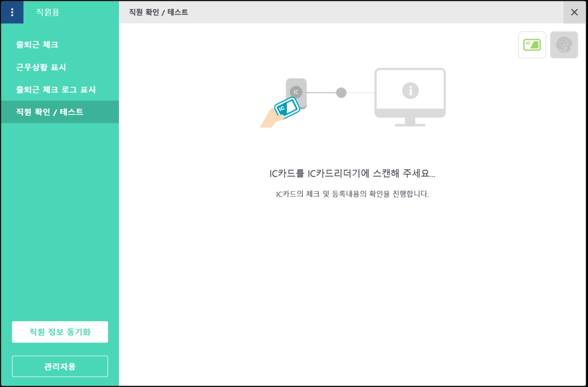 IC, 카드 리더기, 카드 등록, 출퇴근체크, 지정맥, 테스트