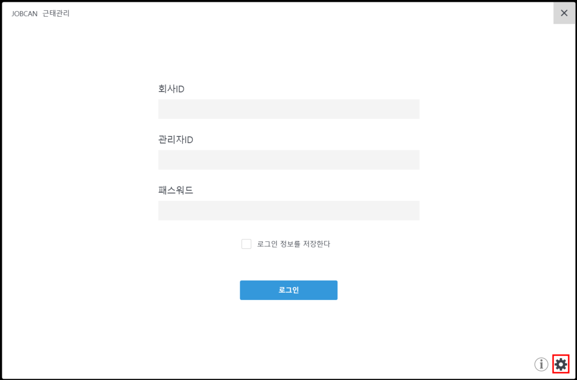 1.로그인 화면에서 오른쪽 하단의 설정 아이콘을 클릭