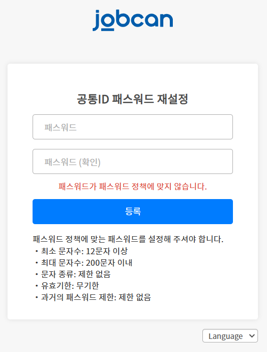 공통 ID 에서는 패스워드 정책으로 아래의 내용을 자유롭게 설정하여 보안을 강화할 수 있습니다.